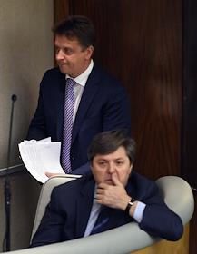 Министр транспорта России Максим Соколов (слева) на пленарном заседании Государственной думы России.