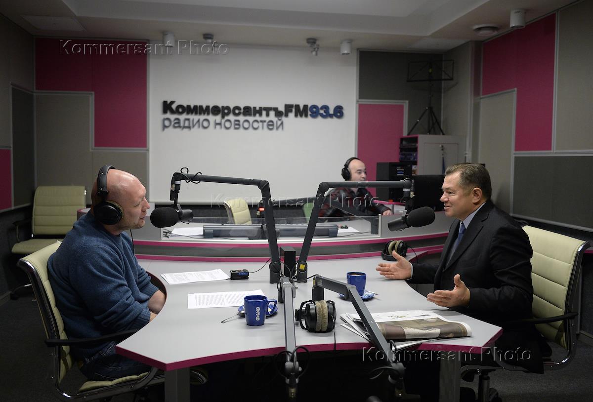 Советник президента России Сергей Глазьев (справа) в студии радиостанции "Коммерсантъ-FM".