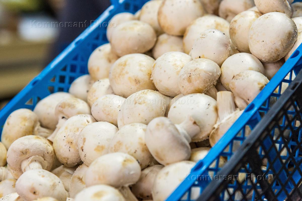 Жанровая фотография. Торговля шампиньонами на Центральном рынке.