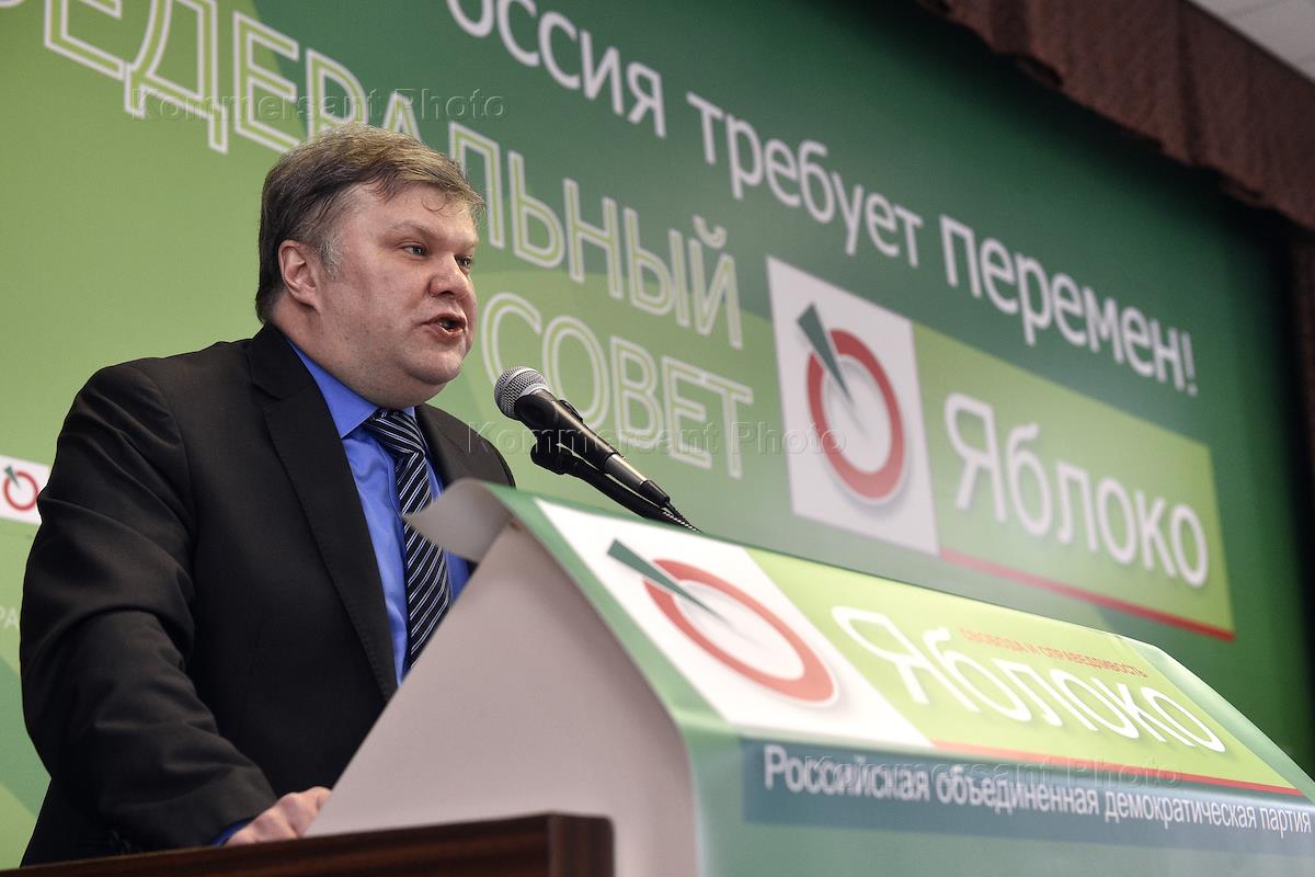 Председатель Российской объединенной демократической партии "Яблоко" Сергей Митрохин во время…