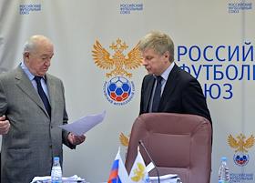 Президент Российского футбольного союза (РФС) Николай Толстых (слева) и председатель комитета Совета…