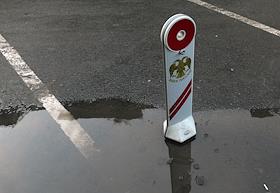 Жанровая фотография. Дорожный знак "Платная парковка" отражается в луже.