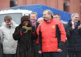 Экономика и бизнес Торжественная церемония передачи первой партии автомобилей КамАЗ (15 ед. техники) представителям Всемирной продовольственной программы ООН в качестве взноса Российской Федерации в фонд этой международной организации на Васильевском спуске.