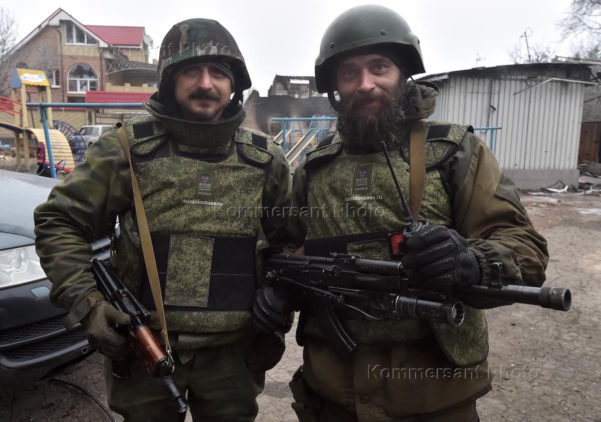 Политическая ситуация в Донецкой области. Ополченцы батальона "Восток" на улице Стратонавтов…
