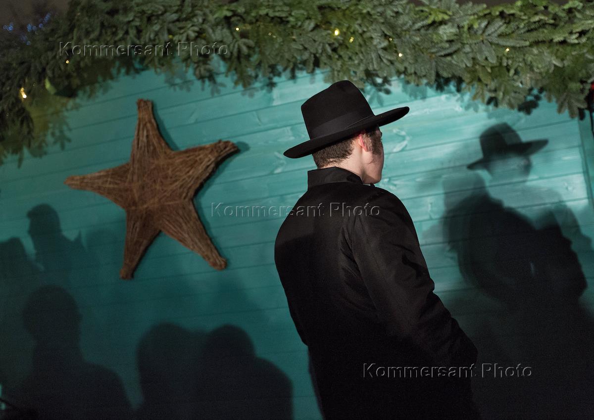 Верующие на церемонии зажигания Ханукальных свечей, приуроченной к началу Хануки (Праздник…