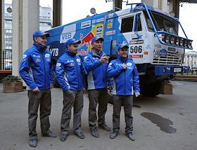 Справа налево: пилоты команды "КАМАЗ-мастер" Эдуард Николаев, Андрей Каргинов, Владимир Чагин, Антон…