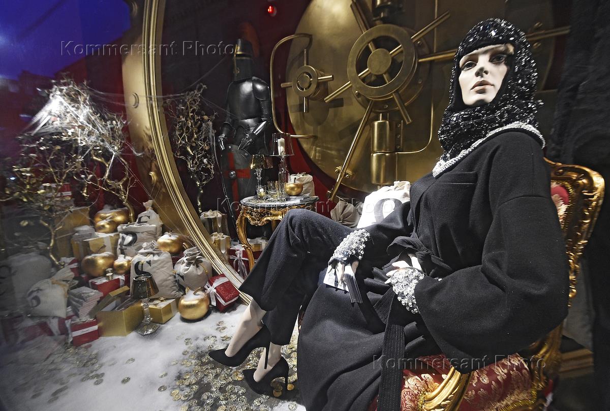 Новогодняя витрина ЦУМ. Мешки с деньгами, доллары