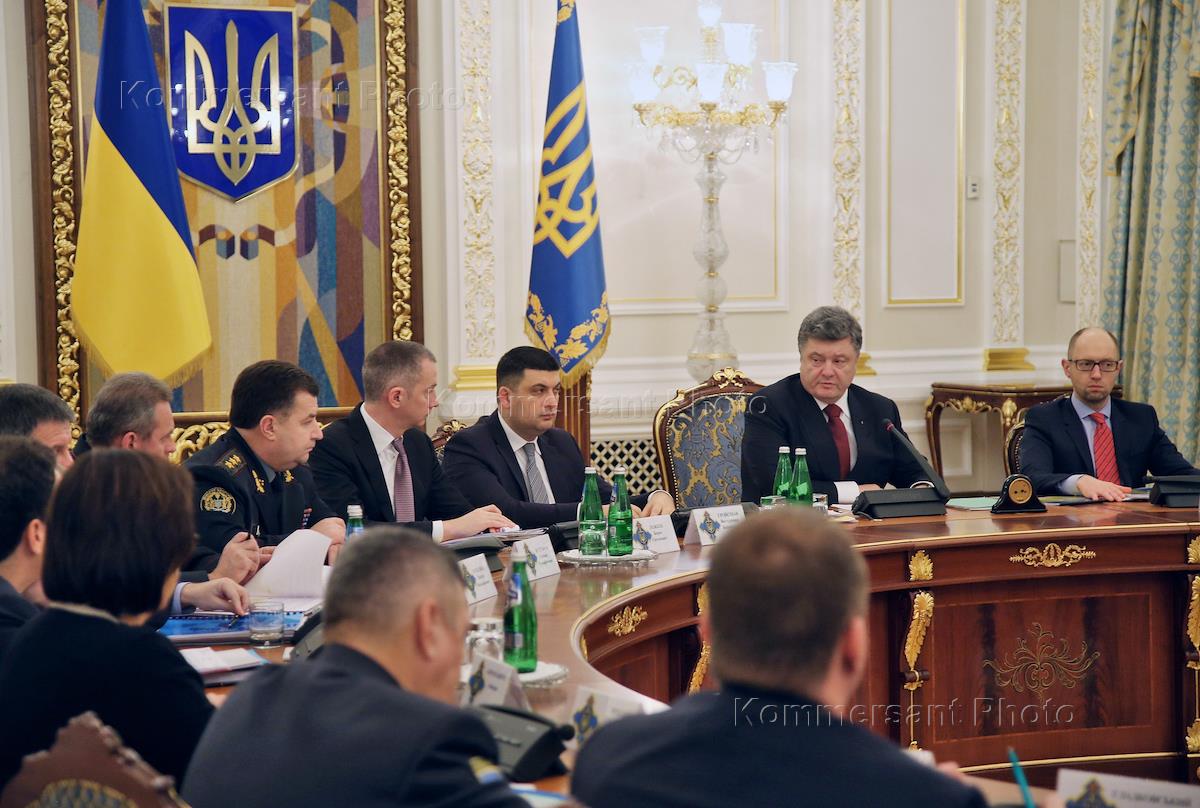 Премьер-министр Украины Арсений Яценюк во время заседания Совета национальной безопасности и…