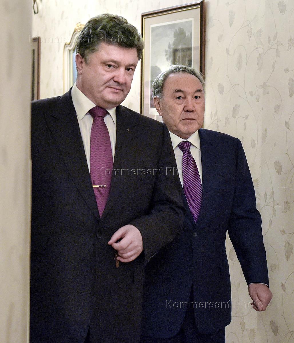 Президент Казахстана Нурсултан Назарбаев (слева) и президент Украины Петр Порошенко (справа) во…