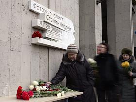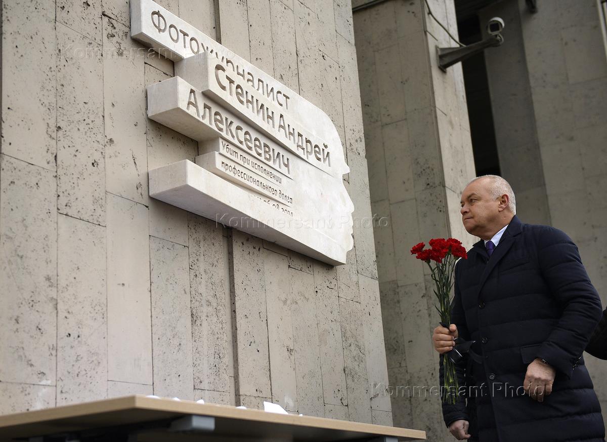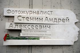 Экономика и бизнес Торжественная церемония открытия мемориальной доски в честь журналиста и фотокорреспондента МИА "Россия Сегодня" Андрея Стенина, в здании "РИА "Новости".