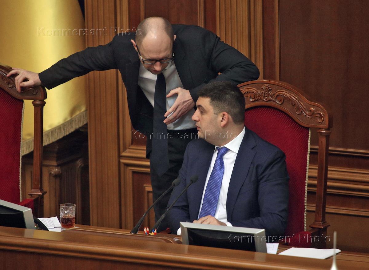 Премьер-министр Украины Арсений Яценюк (слева) и председатель Верховной Рады Украины (ВРУ) Владимир…