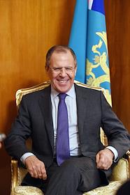 Министр иностранных дел (МИД) России Сергей Лавров во время интервью в здании МИД России.