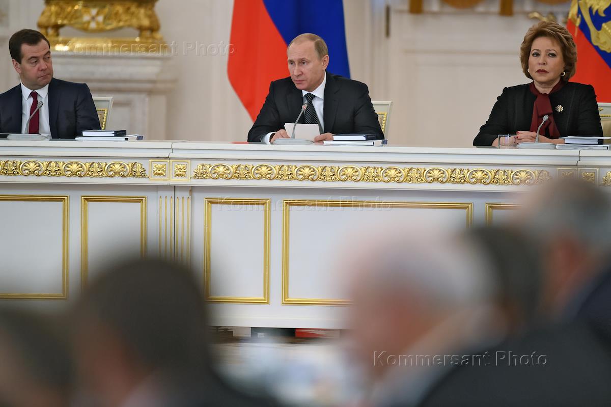 Председатель Совета Федерации России Валентина Матвиенко на совместном заседании Госсовета и Совета…