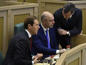 Пленарное заседание Совета Федерации России. Слева направо: министр промышленности и торговли России…