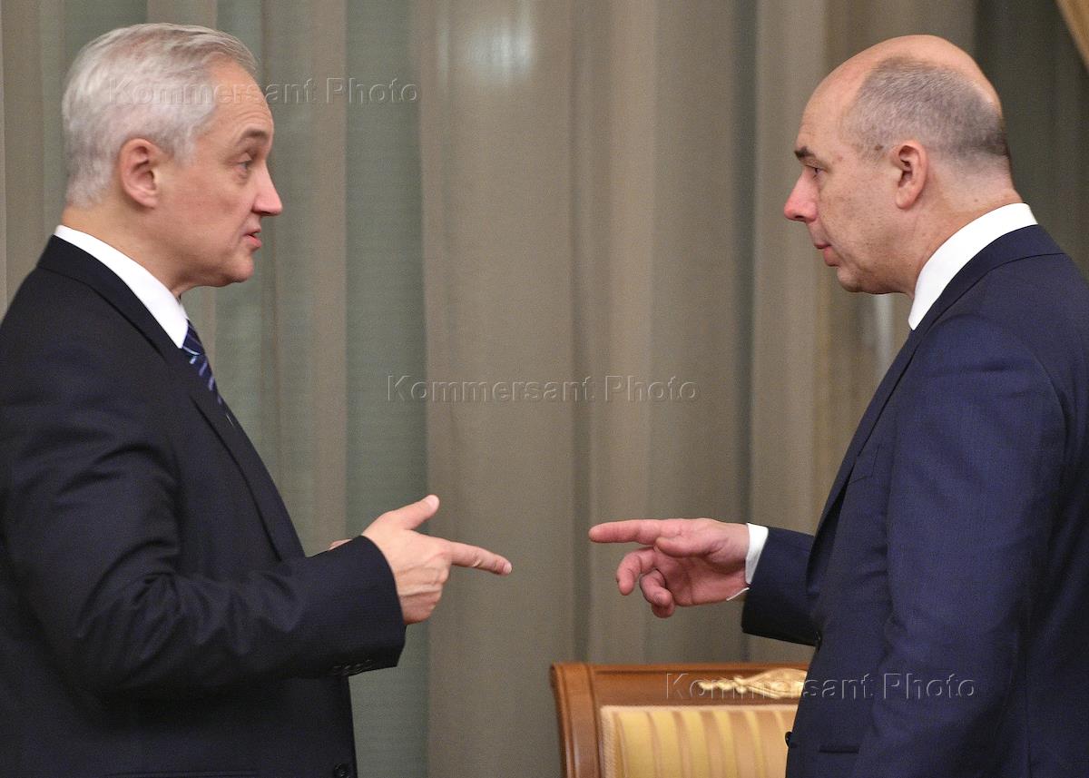 Помощник президента России Андрей Белоусов (слева) и министр финансов России Антон Силуанов (справа)…