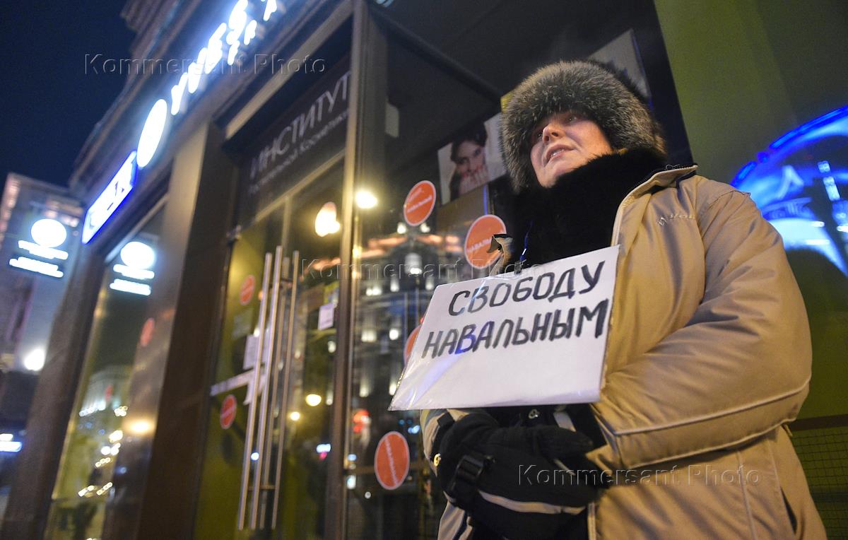 Оппозиционер Алексей Навальный (в центре) во время акции в поддержку братьев Навальных на Манежной…