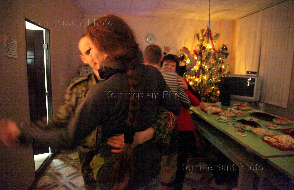 Жанровая фотография. Бойцы ополчения ДНР встречают Новый Год в своем расположении в Донецке.