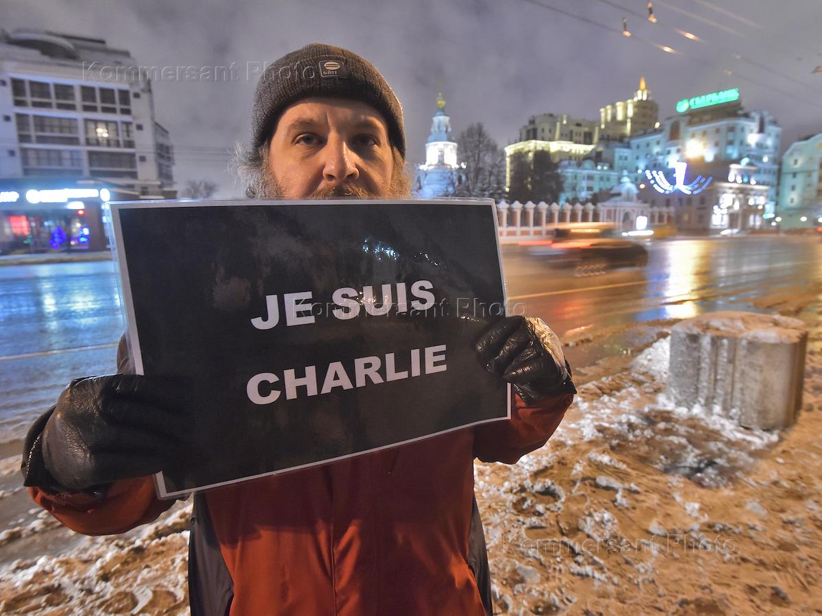 Акция "Je suis Charlie" в поддержку семьям убитых журналистов и полицейских в Париже у посольства Франции, 11.01.2015, 17-00