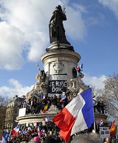"Марш единства" в память о жертвах нападения на редакцию журнала Charlie Hebdo, на площади Республики в Париже.