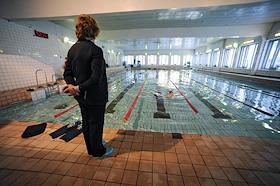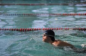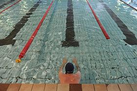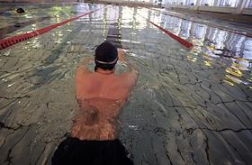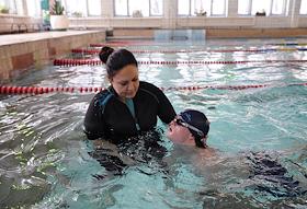 Занятие спортом в бассейне людей с синдромом Дауна.