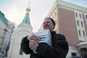 Работа человека с синдромом Дауна в Сретенском монастыре.