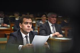 Председатель правительства России Дмитрий Медведев во время посещения Российской Государственной…