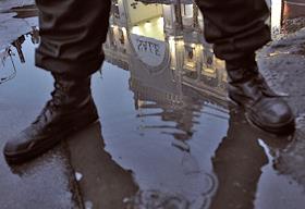 Виды Москвы. Отражение в луже бутика итальянских марок в Третьяковском проезде.