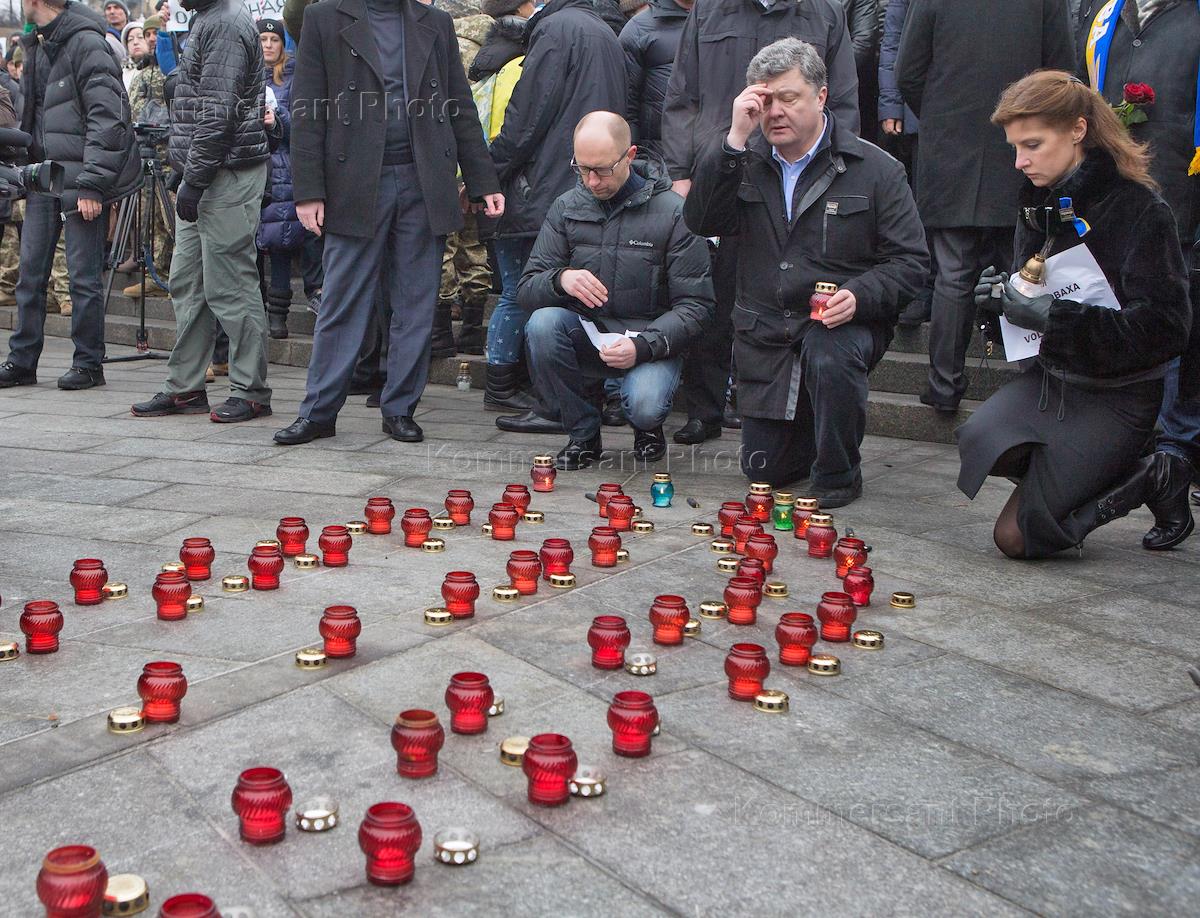 Политика Траурное шествие от парка имени Тараса Шевченко в сторону Майдана памяти жертв теракта под Волновахой с участием Президент Украины Петар Порошенкоа и премьер-министра Арсения Яценюка.