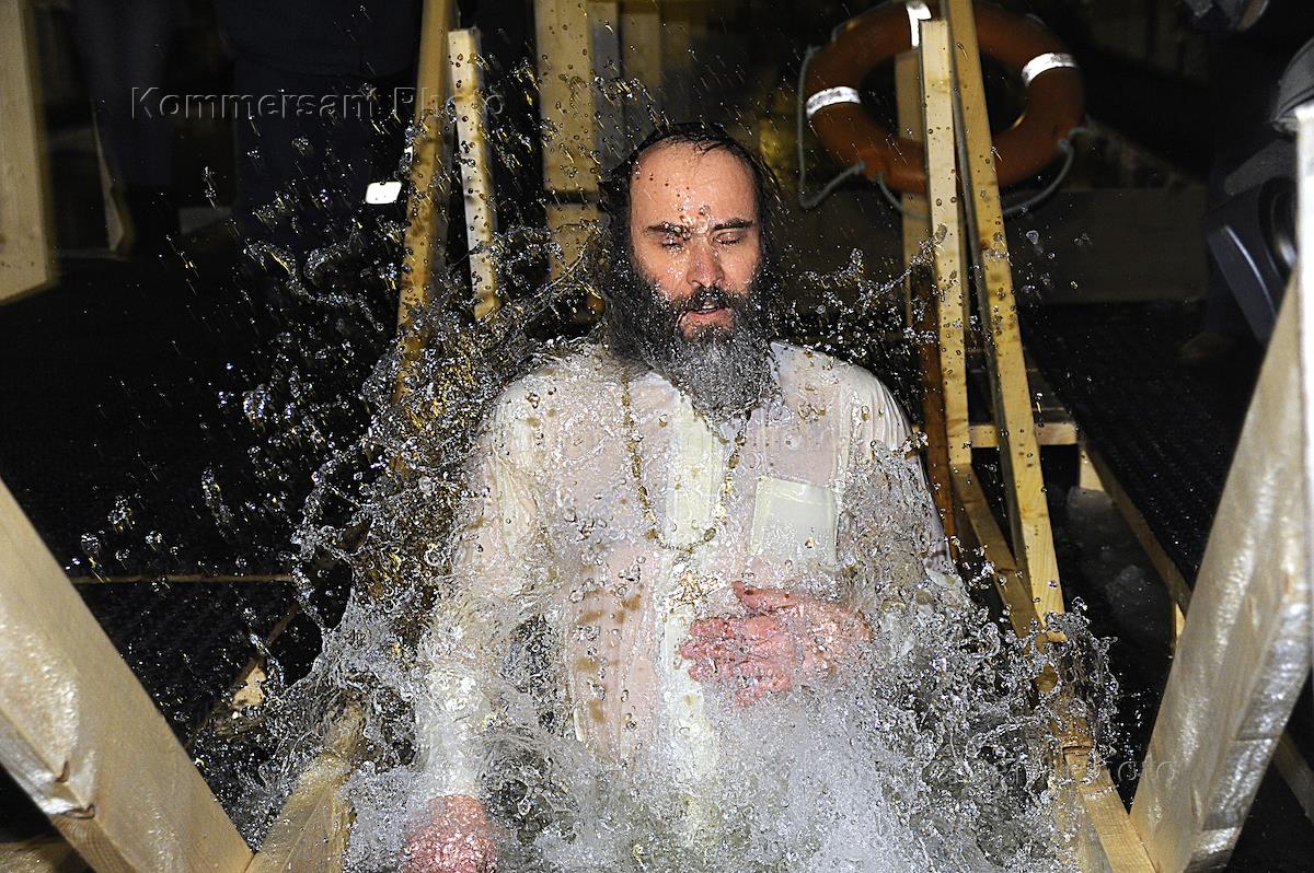 Крещенские купания во время праздника Крещения Господня на Большом Садовом пруду.