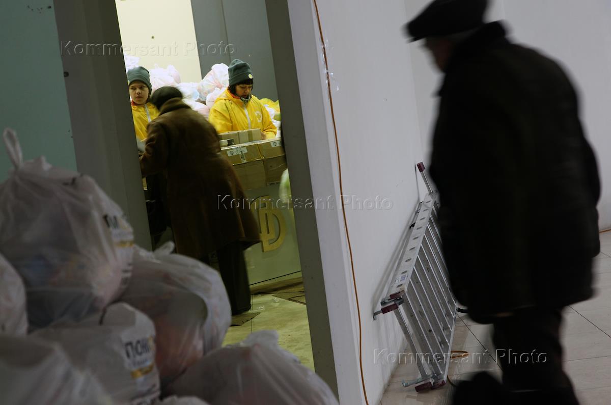Политическая ситуация в Донецке. Пункт выдачи гуманитарной помощи Фонда Рината Ахметова.