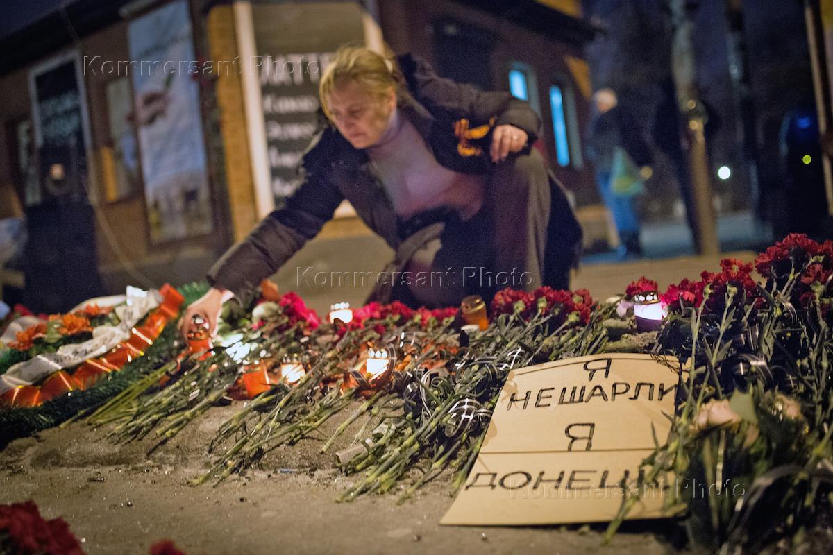 Политика Траурный митинг и акция «Зажги свечу памяти», с участием главы ДНР Александра Захарченко, на месте артобстрела остановки общественного транспорта в микрорайоне Боссе в городе Донецк.