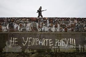Жанровая фотография. Рыбак ловит рыбу на побережье Балтийского пролива в городе Балтийск.