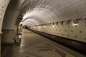 Интерьер станции Белорусская кольцевой линии Московского метрополитена.