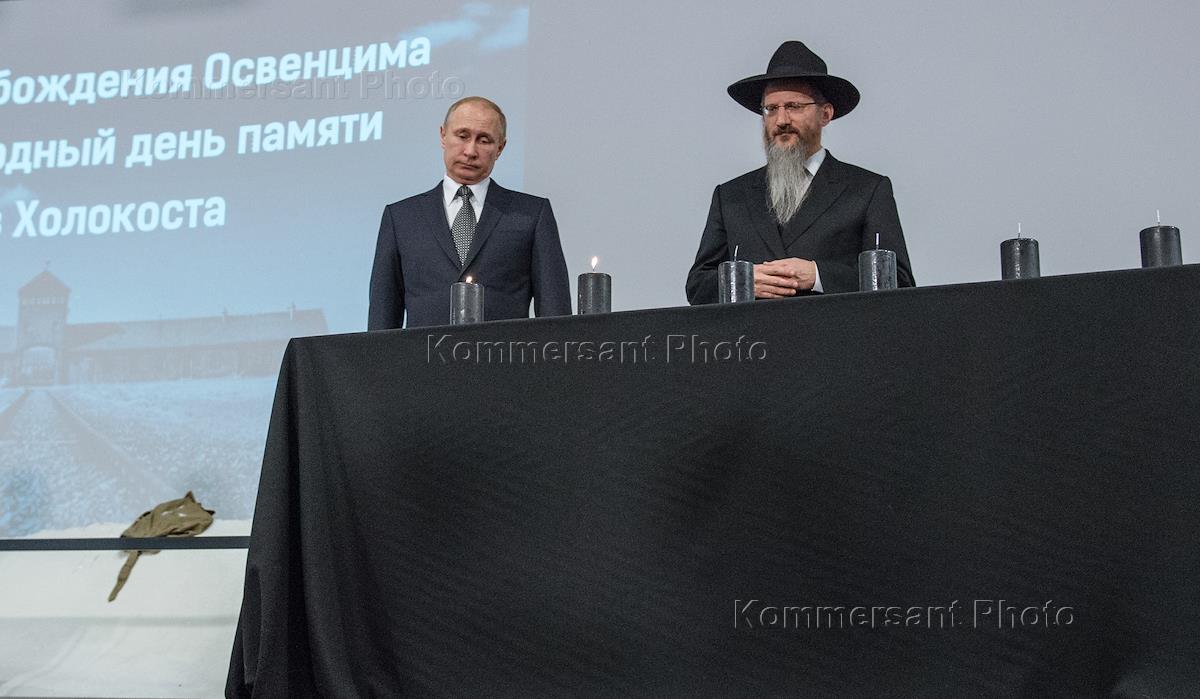 Президент России Владимир Путин (в центре) на церемонии зажжения свечей памяти жертв Холокоста, в…
