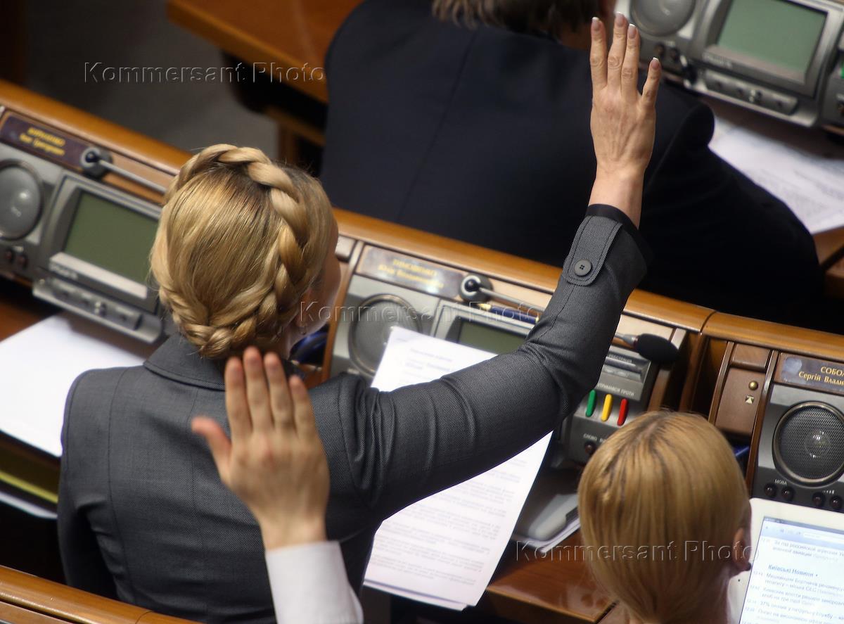 Пленароное заседание Верховной Рады Украины. Лидер ВО "Батькивщина" Юлия Тимошенко во время…