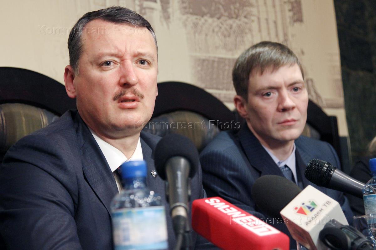 Бывший министр обороны Донецкой народной республики (ДНР) Игорь Стрелков (слева) и председатель…