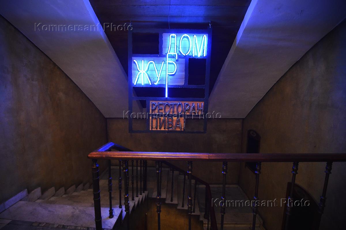 Реклама фирмы-арендатора "Ресторан пива" расположенной в здании Центрального дома журналиста.