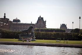 Виды Парижа. Мужчина отдыхает в одном из парков города.
