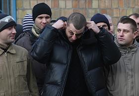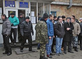 Новобранцы в Деснянском районном военкомате во время отправки в войска.