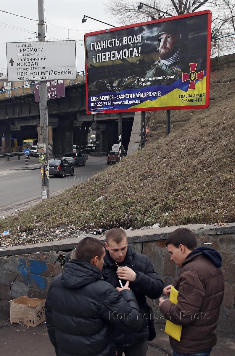 Жанровая фотография. Билборд с рекламной кампанией Министерства обороны Украины для набора…