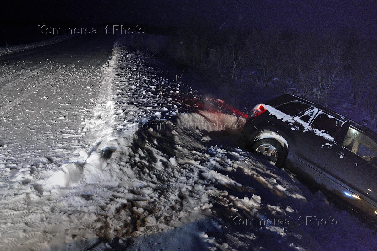 Виды окрестностей поселка Териберка. Дорожно-транспортное происшествие (ДТП). Автомобиль съехал в…