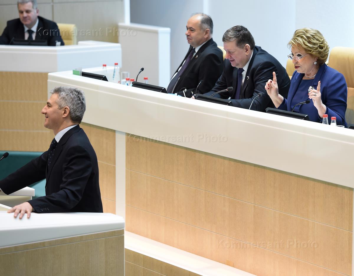 Заседание Совета Федерации (СФ) России. Слева направо: представитель в СФ от исполнительного органа…