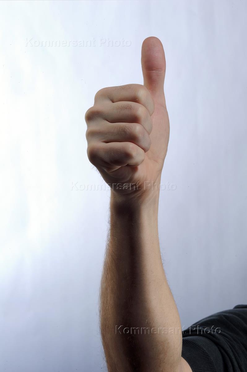 Обложка для журнала "Деньги". Мужская рука. Жест, Палец вверх.