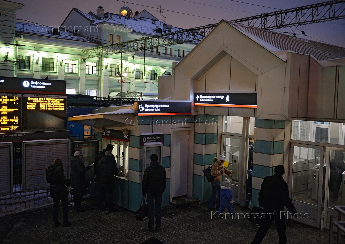 Жанровая фотография. Пассажиры при входе на платформу к пригородным поездам на Белорусском вокзале.