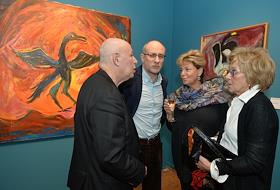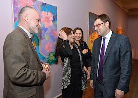 Врач Лариса Гогова (слева) и художник Света Виккерс (вторая слева) на закрытом показе выставки "Сады…