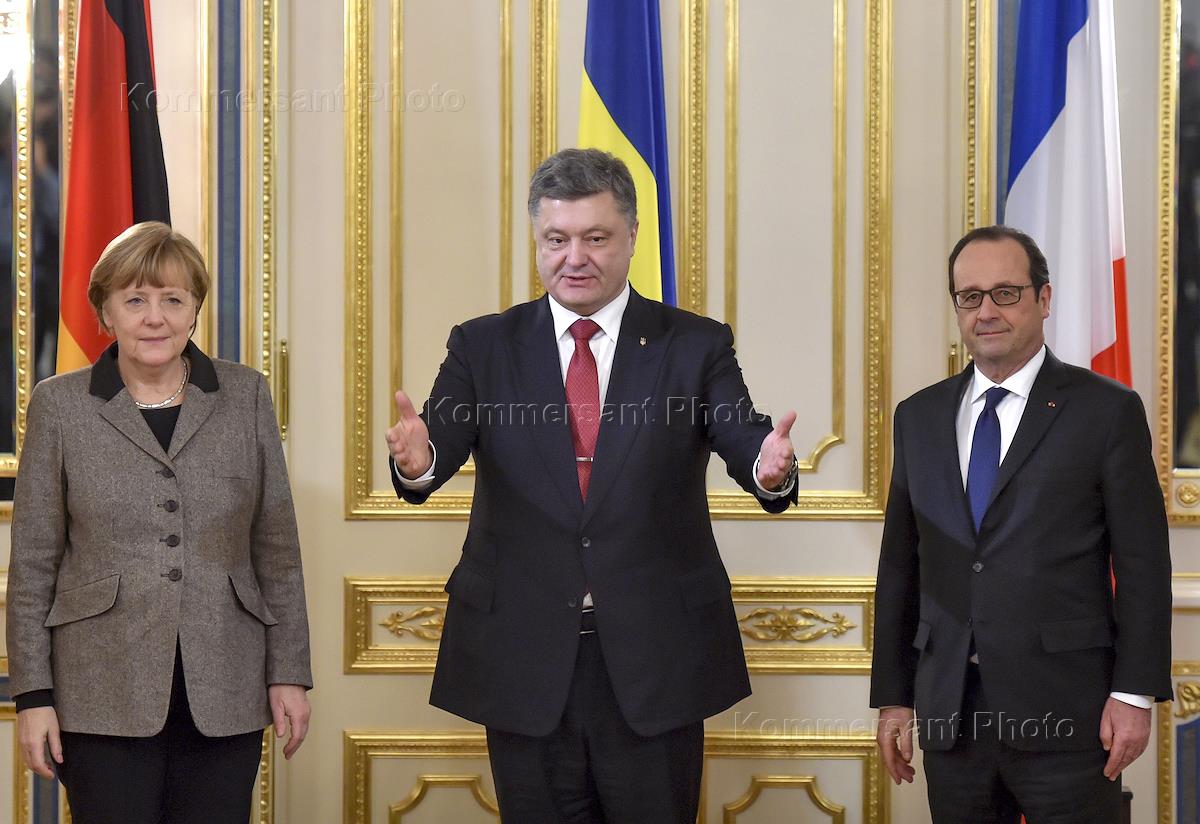 Президент Украины Петр Порошенко во время переговоров с канцлером Германии Ангелой Меркель и президентом Франции Франсуа Олландом в Киеве.