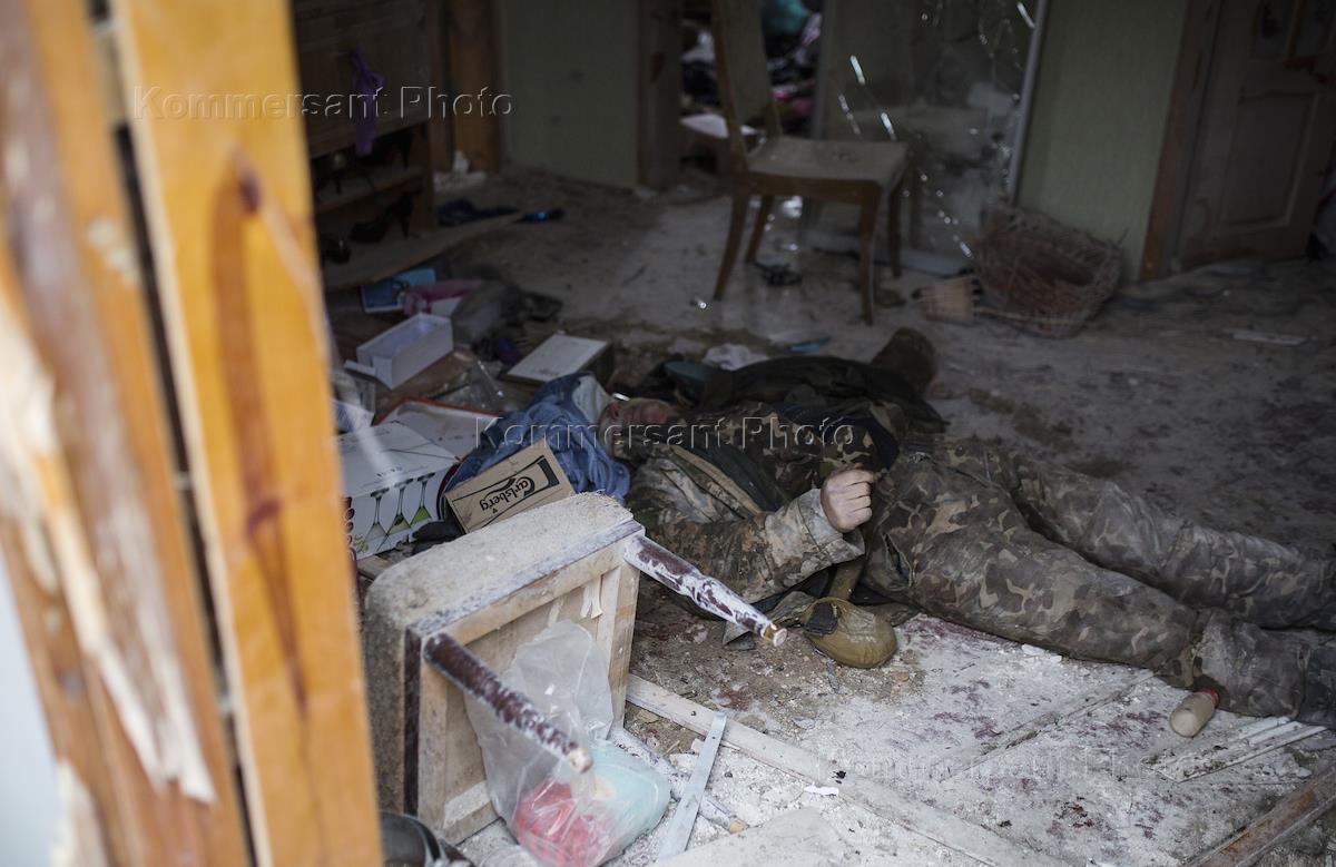 Обстановка в городе Углегорск Донецкой области. Погибший солдат вооруженных сил Украины (ВСУ).