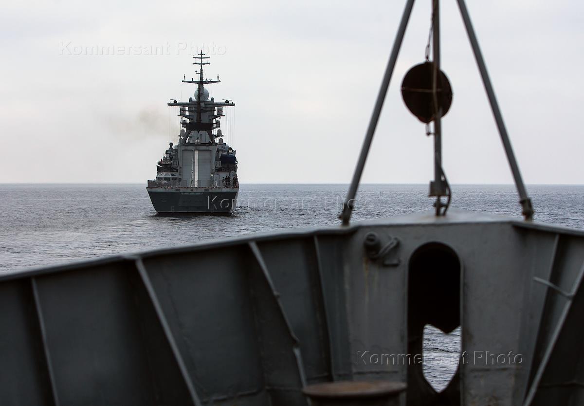Корвет Балтийского флота Военно-Морских Сил России "Сообразительный" во время похода.