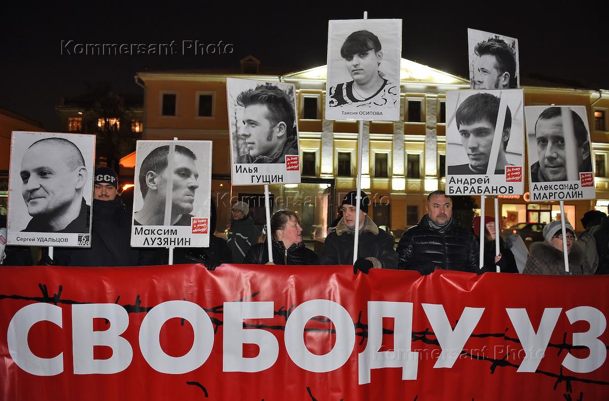 Участники массового пикета в поддержку "Узников Болотной" у станции метро "Новокузнецкая". Портреты…