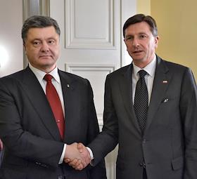 Президент Украины Петр Порошенко (слева) и президент Словении Борут Пахор (справа) во время встречи.
